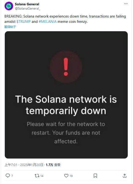Solana 宕机已经不止一次了。这次是因为特朗普发了个币,就又宕机了……