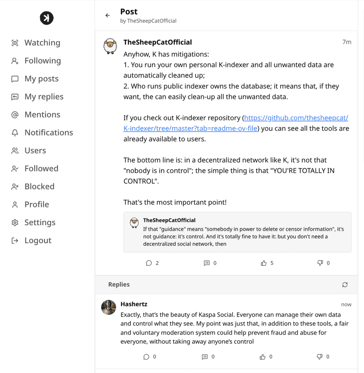 他依然会参与 Kaspa 社区的一些问题讨论。