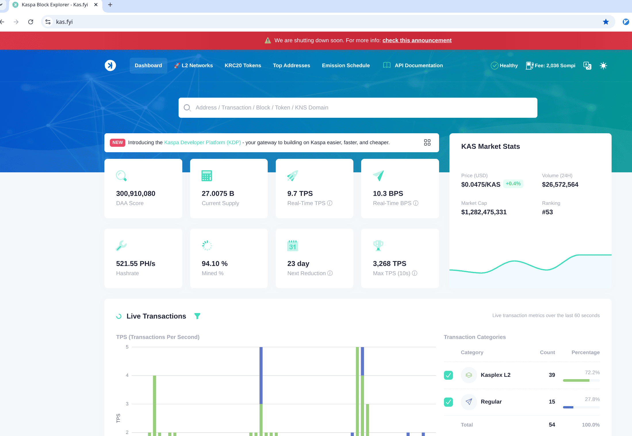 2025-12-14 区块浏览器 kas.fyi 关闭