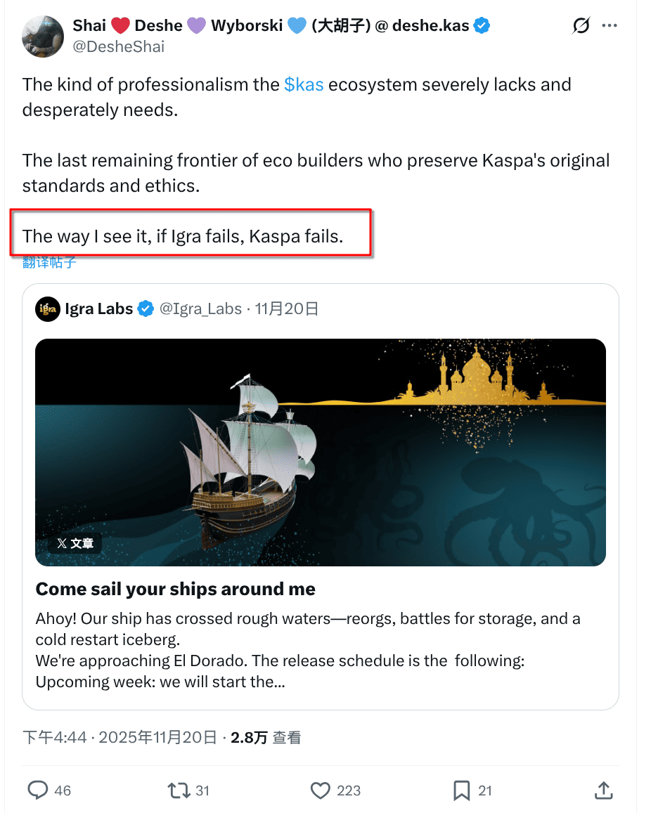 Shai 大胡子 (https://x.com/DesheShai) 是一名数学博士,参与了部分 Kaspa 的论文证明工作,曾是 Kaspa 团队早期成员之一。